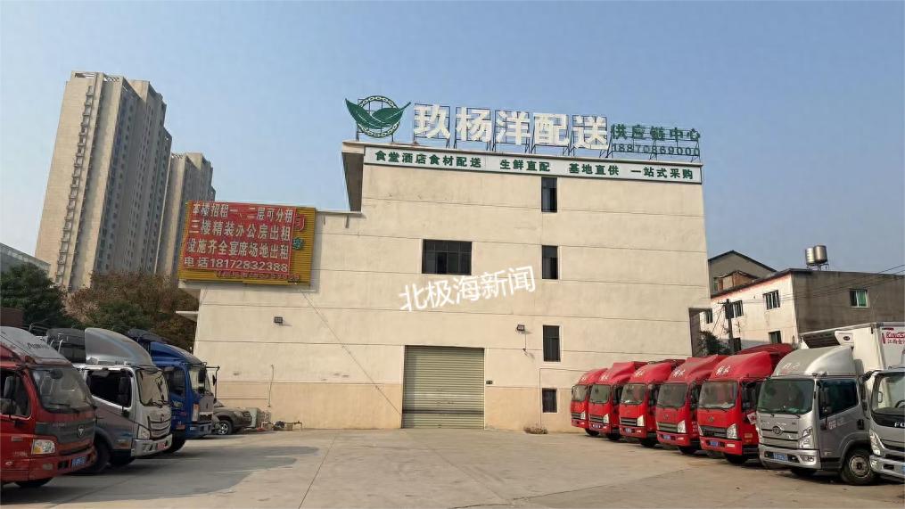 根据江西省南昌县莲塘镇李先生提供的照片,在莲塘镇定岗村李埠南路108号有一栋三层建筑,楼顶大字为“玖杨洋配送供应链中心”。墙体上张贴着招租广告,“一、二层可分租”“三楼精装办公房出租”“设施齐全宴席场地出租”。建筑临街侧有16间门市,有一家五金店开门营业。