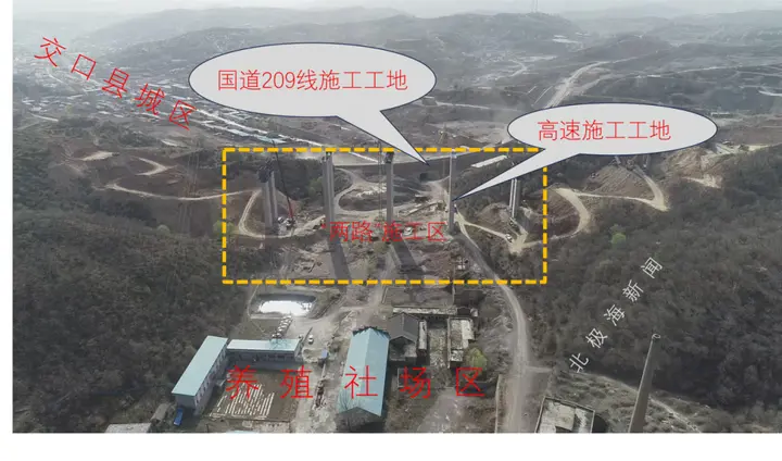2020年3月,随着交口县209线涵洞工程在距离养殖社不到500米处施工,进出养殖社的唯一通道被切断。同年10月,在209线工程尚未完工的情况下,“离隰高速”项目又紧接着启动。此次施工征用了养殖社的大门、地磅及室内篮球场用地,并将进出口与部分院落封堵。至此,养殖社主要生产场区陷入“孤岛”状态,无法正常运营。