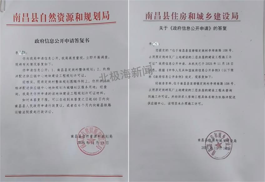 11月13日,南昌县自然资源和规划局作出答复,确认该地块规划为城镇社区服务用地,且未查询到该地块建设工程规划许可证材料。11月18日,南昌县住房和城乡建设局作出答复,“三层房屋的建设工程未查询到施工许可证。”