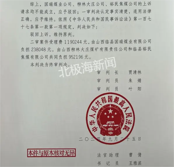 原被告均提出上诉,2024年9月,最高法作出终审判决,维持山西高院原判。