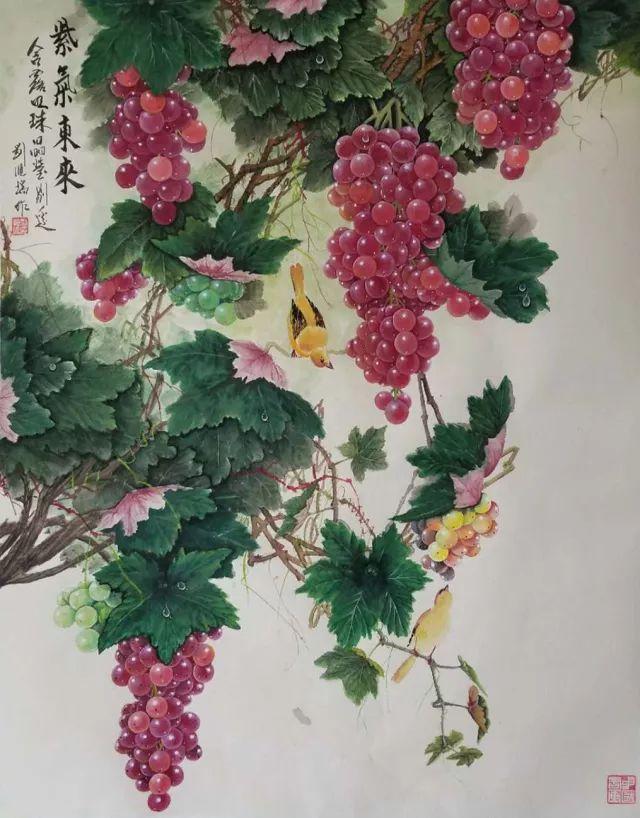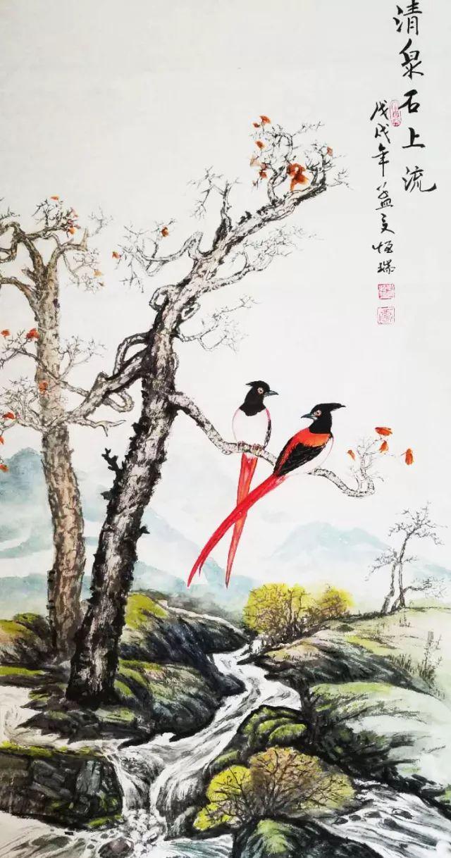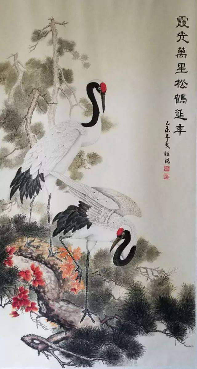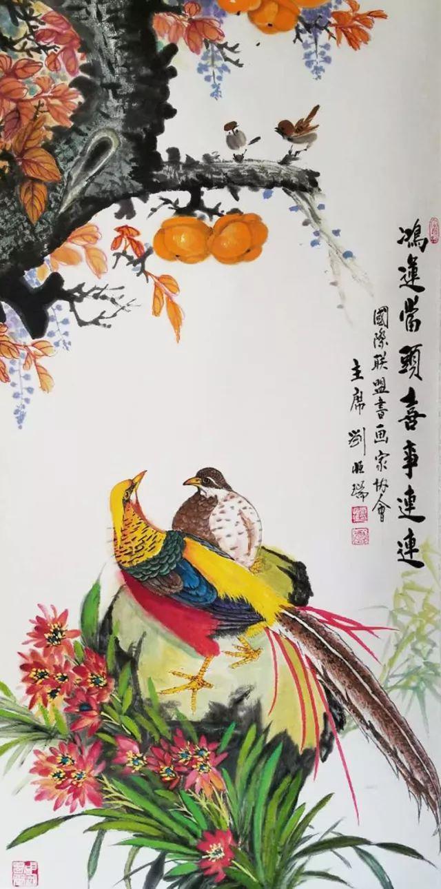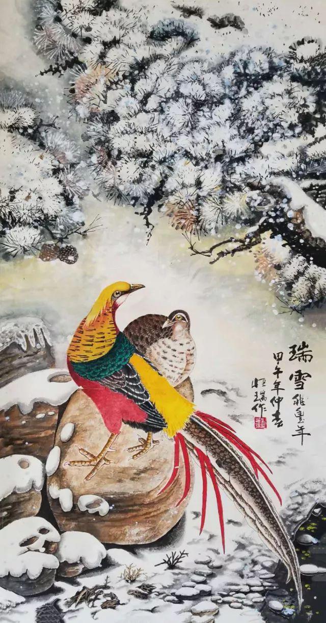 从先人原始部落图腾式的鸟兽岩画,到早期文明的河洛图书,再到文字之祖甲骨文,花鸟画从来都是与古老的中华文明息息相关,这在一定程度上反映花鸟题材在人们心中的重要位置。花鸟画寄托人们对美好事物的向往,五代时期花鸟画走向成熟,出现黄筌、徐熙两位大家。宋、元两代,其创作空前活跃,达到一个高峰,明清及民国曾出现不少花鸟画大师,如青藤白阳、林良吕纪、老莲南田,在近现代的100多年里,花鸟画可谓占据中国画的半壁江山,如吴昌硕、齐白石、潘天寿。而今刘恒瑞潜心研究先人画作,在此基础上,画出自己独有的特色。