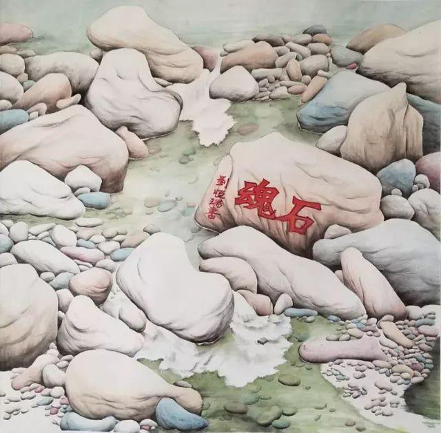 刘恒瑞的写意花鸟,重视意境的传达,品其画能感受到“诗中有画,画中有诗”的诗意之美。其境界是俯瞰自然,超越自然基础上的自在兴观。他重视画面意境的营造,空白的安排,水和天空、溪流以空白来表现,皆为突出石头主体,画面简单却充满生机。淡彩的干湿浓淡营造出一种假想的真实感,那里仿佛是曾是似曾相识的情景,这虚实相生的意境美,带给人以无限的遐想。在画境中,看似是无人的境界,刘恒瑞用自己的笔墨完全融化在画境中,意趣盎然。