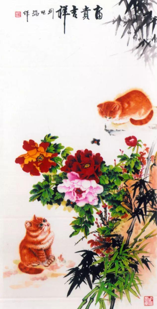 他的这幅《富贵吉祥》,描绘两只小猫与牡丹,其中一只在聚精会神地欣赏粲然绽放的花朵,感受大自然的馈赠,另一只在安静的休息,画面透出一种清幽之美。作品展现植物与动物两个世界里迥然不同的妙趣,画家追求画面的简洁和谐,在构图上讲究顾盼呼应,通过色彩的对比,突出画面意境,呈现出花鸟艺术永恒的魅力。